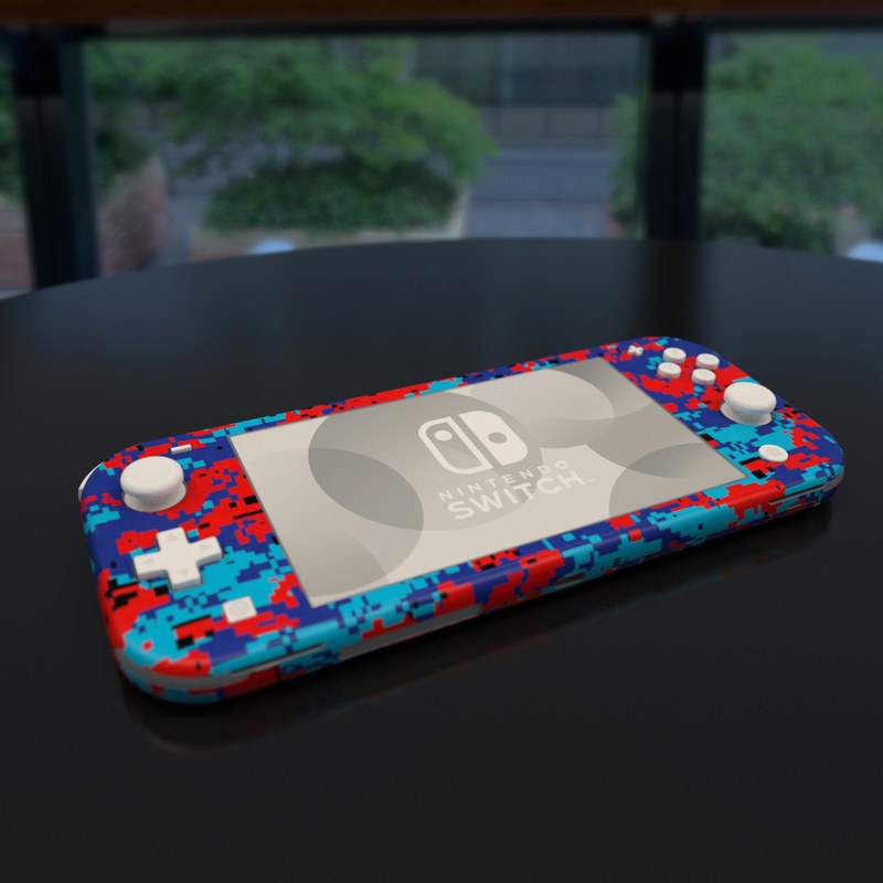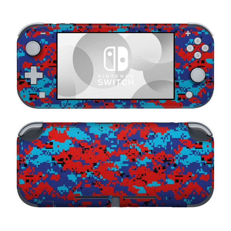 iStyles Nintendo Switch Lite Skin design of Blue, Red, Pattern, Textile, Electric blue, with blue, red colors, and tagged with military, patterns, lookslike, camo, digitalcamo.