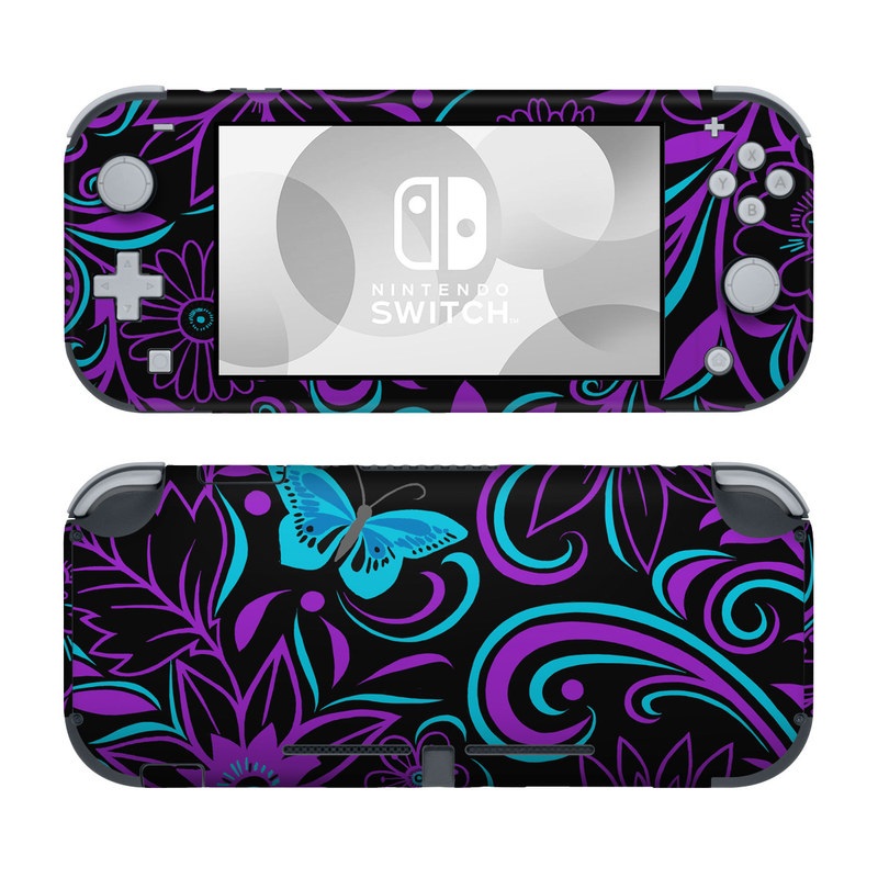 iStyles Nintendo Switch Lite Skin design of Pattern, Purple, Violet, Turquoise, Teal, Design, Floral design, Visual arts, Magenta, Motif, with black, purple, blue colors, and tagged with flowers, patterns.
