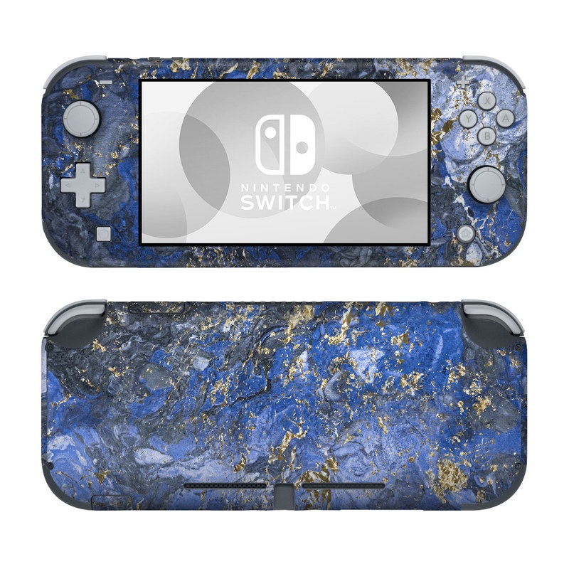 iStyles Nintendo Switch Lite Skin design of Blue, Water, Cobalt blue, Rock, Painting, Geology, Electric blue, Mineral, Pattern, Acrylic paint, with black, blue, yellow, white, gray colors, and tagged with patterns, lookslike, nature.
