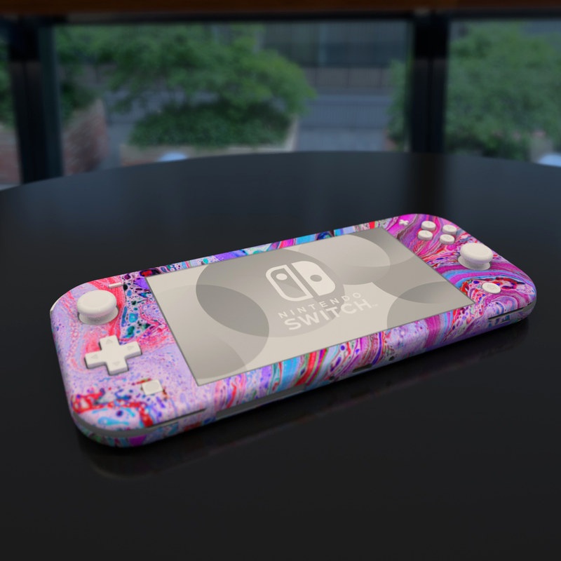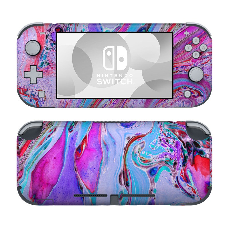 iStyles Nintendo Switch Lite Skin design of Pink, Purple, Pattern, Design, Visual arts, Art, Psychedelic art, Magenta, Acrylic paint, Colorfulness, with pink, purple, blue, green colors, and tagged with abstract, abstract, bright, colorful, marble, marbled, pastel.