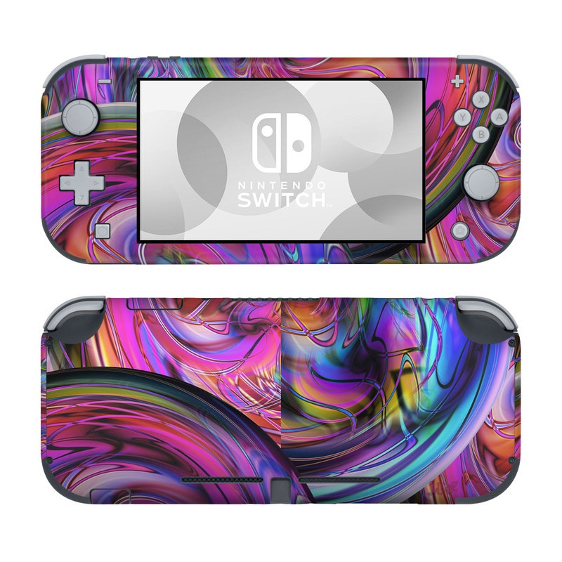 iStyles Nintendo Switch Lite Skin design of Pattern, Psychedelic art, Purple, Art, Fractal art, Design, Graphic design, Colorfulness, Textile, Visual arts, with purple, black, red, gray, blue, green colors, and tagged with abstract.