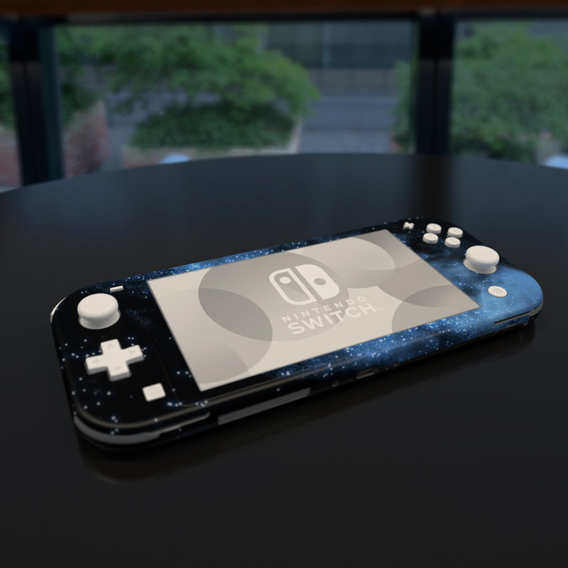 iStyles Nintendo Switch Lite Skin design of Sky, Atmosphere, Black, Blue, Outer space, Atmospheric phenomenon, Astronomical object, Darkness, Universe, Space, with black, blue colors, and tagged with space.