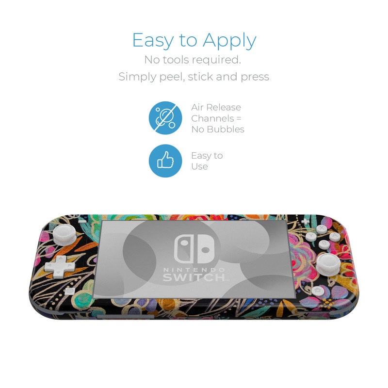 Each Skin covers your Nintendo Switch Lite, provides low profile protection with no bulk and helps protect from scratches. The unique weaved adhesive allows for fast, easy and accurate application, and goo-free removal.