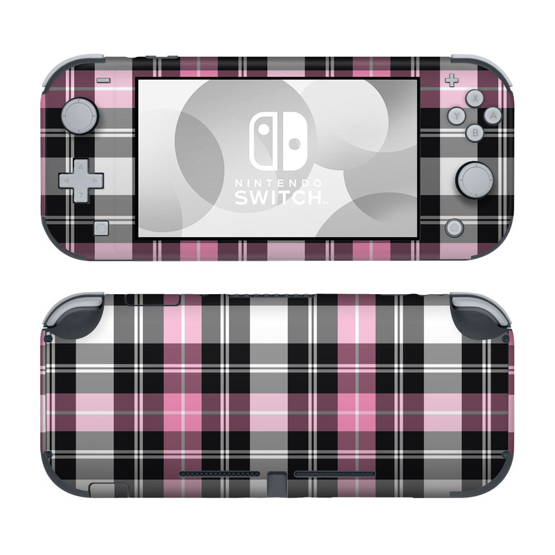 iStyles Nintendo Switch Lite Skin design of Plaid, Tartan, Pattern, Pink, Purple, Violet, Line, Textile, Magenta, Design, with black, gray, pink, red, white, purple colors, and tagged with patterns.