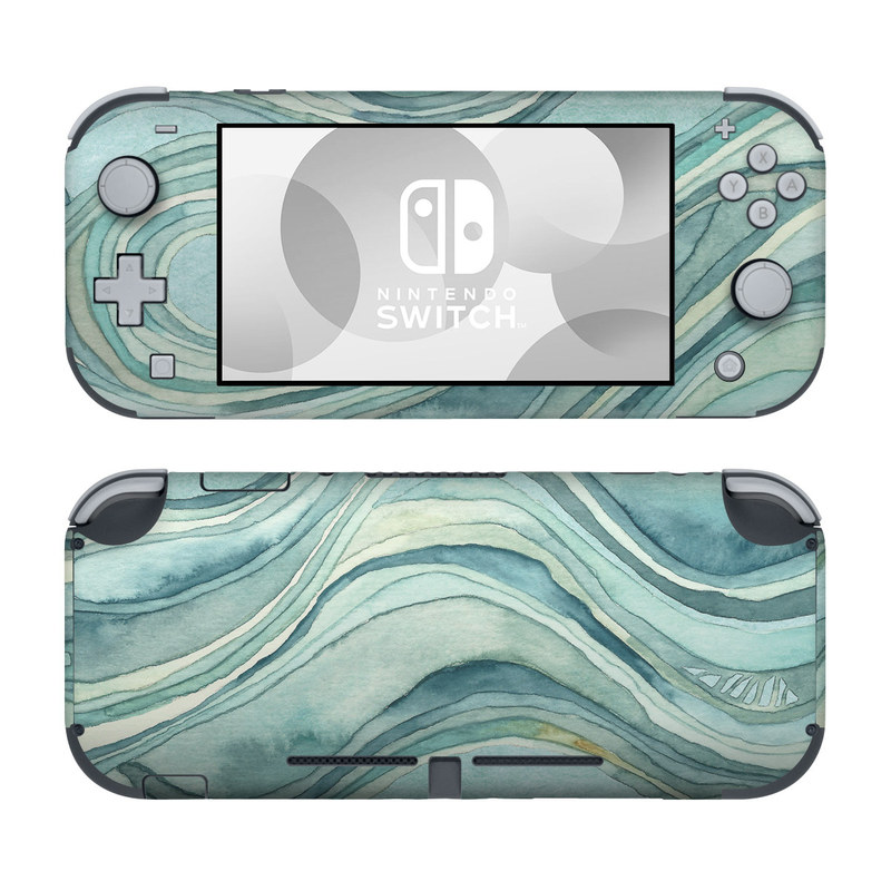 iStyles Nintendo Switch Lite Skin design of Aqua, Blue, Pattern, Turquoise, Teal, Water, Design, Line, Wave, Textile, with gray, blue colors, and tagged with patterns.