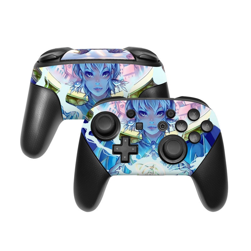 iStyles Nintendo Switch Pro Controller Skin design of Cg artwork, Anime, Cartoon, Sky, Long hair, Illustration, Fictional character, Black hair, Art, with blue, purple, pink, white, yellow colors, and tagged with people, urban, fantasy.