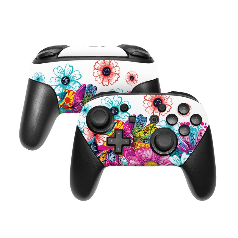 iStyles Nintendo Switch Pro Controller Skin design of Pattern, Floral design, Design, Graphic design, Flower, Wildflower, Plant, Graphics, Clip art, Visual arts, with white, pink, blue, yellow, purple, red colors, and tagged with patterns, flowers, bright, carpintos, colorful, flowers, spring, summer.