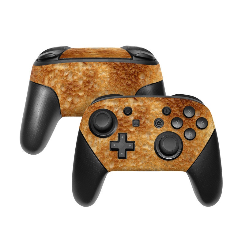 iStyles Nintendo Switch Pro Controller Skin design, with brown, gray, white, black colors, and tagged with lookslike, toaster, bread, toasted.