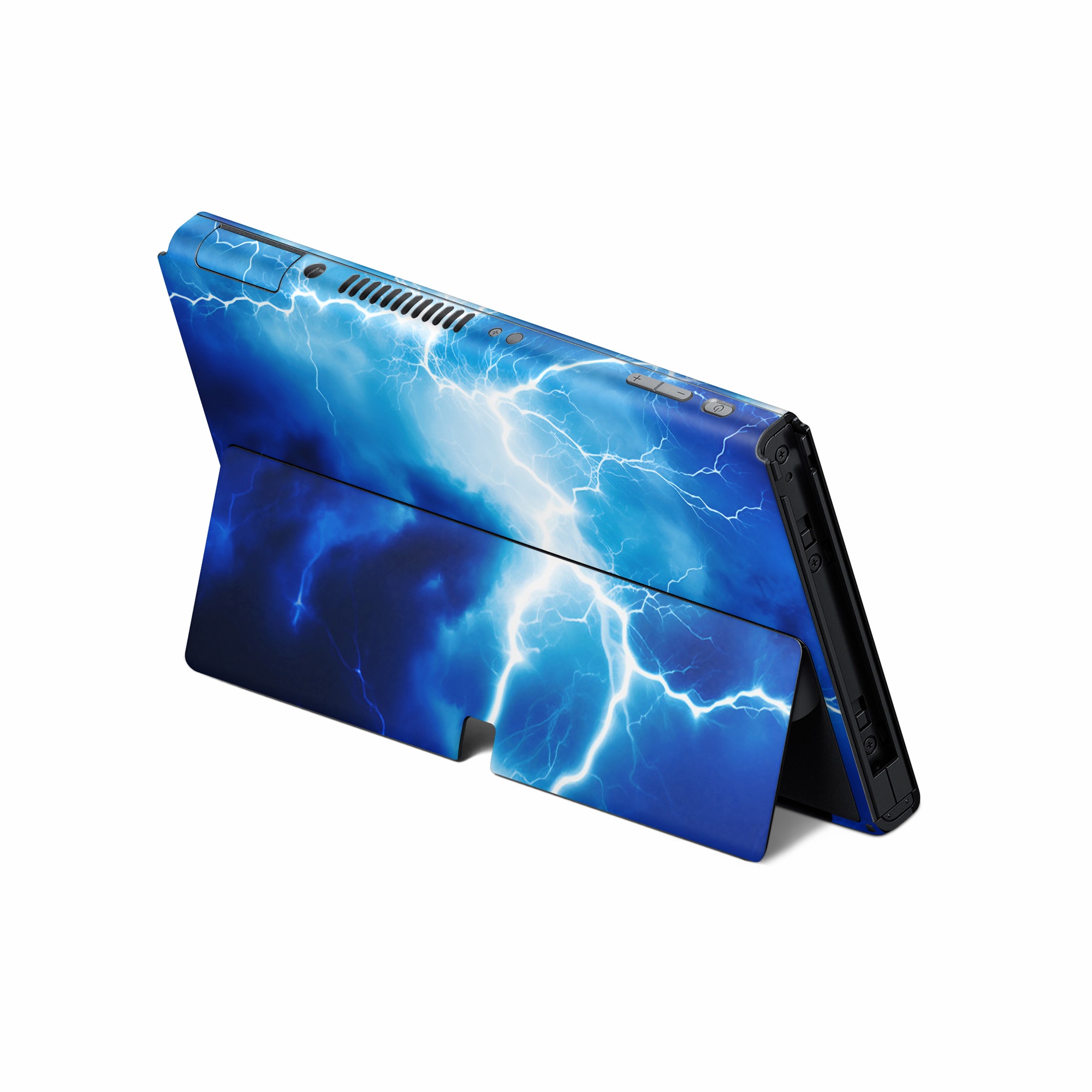 iStyles Nintendo Switch Skin design of Thunder, Sky, Atmosphere, Daytime, Cloud, Water, Lightning, Light, Azure, Natural environment, with black, blue colors, and tagged with patterns, nature, lightning, sky, thunderstorm, storm, electricity.