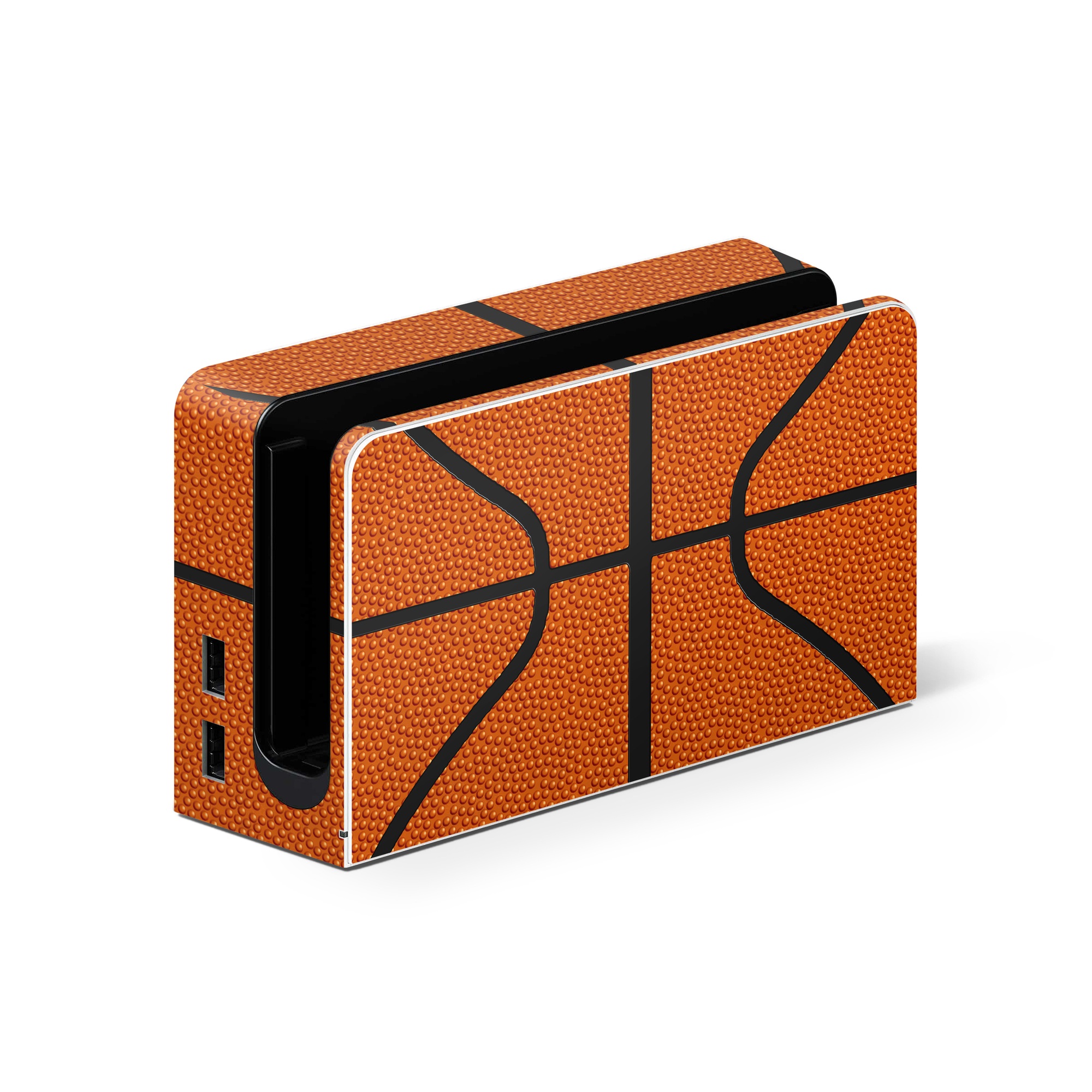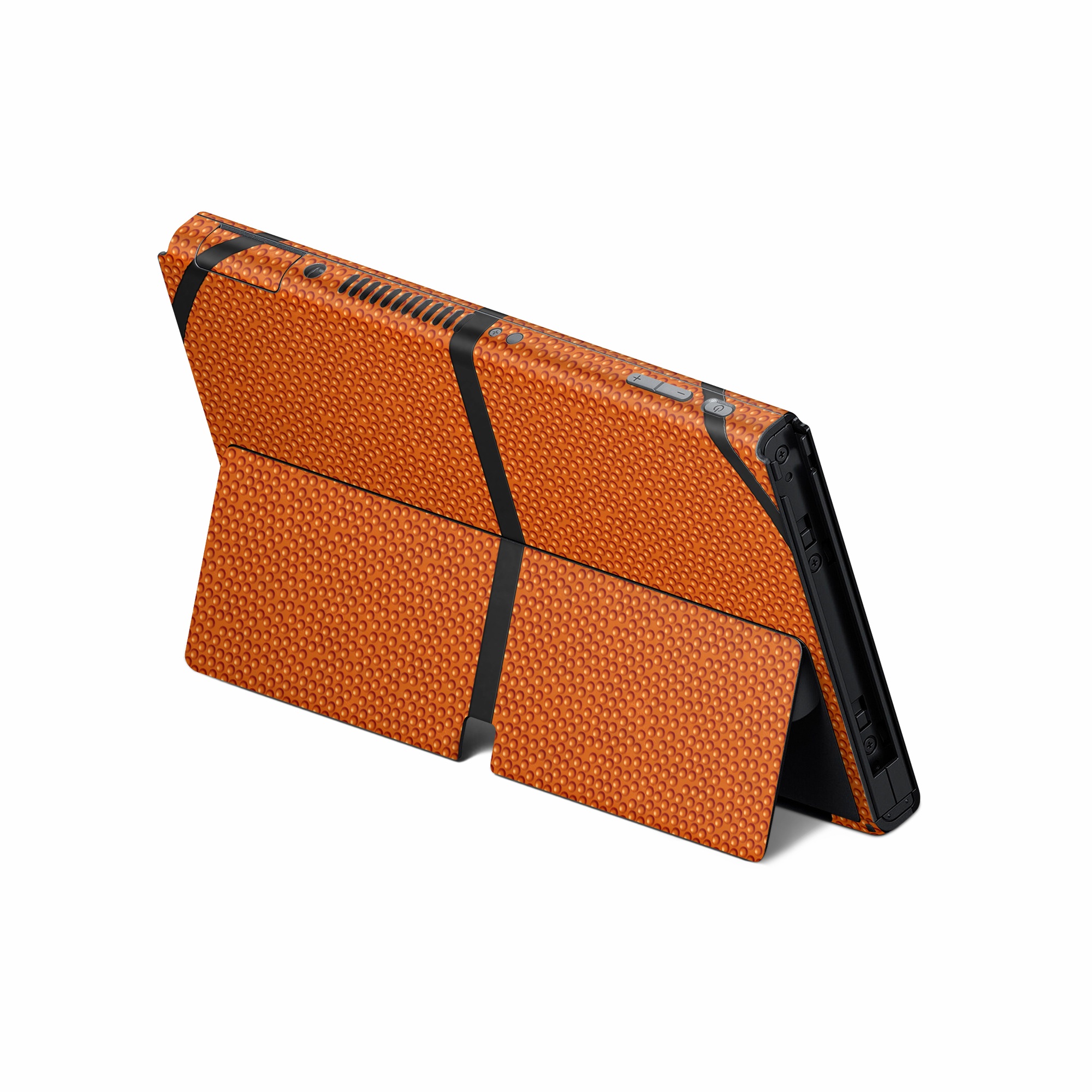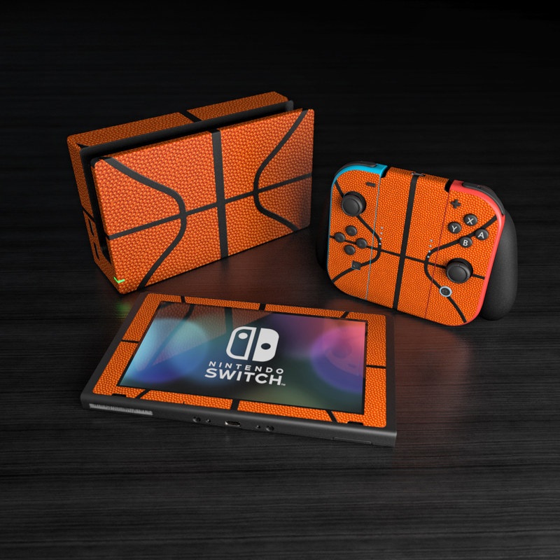 iStyles Nintendo Switch Skin design of Orange, Basketball, Line, Pattern, Sport venue, Brown, Yellow, Design, Net, Team sport, with orange, black colors, and tagged with sports, lookslike, objects.