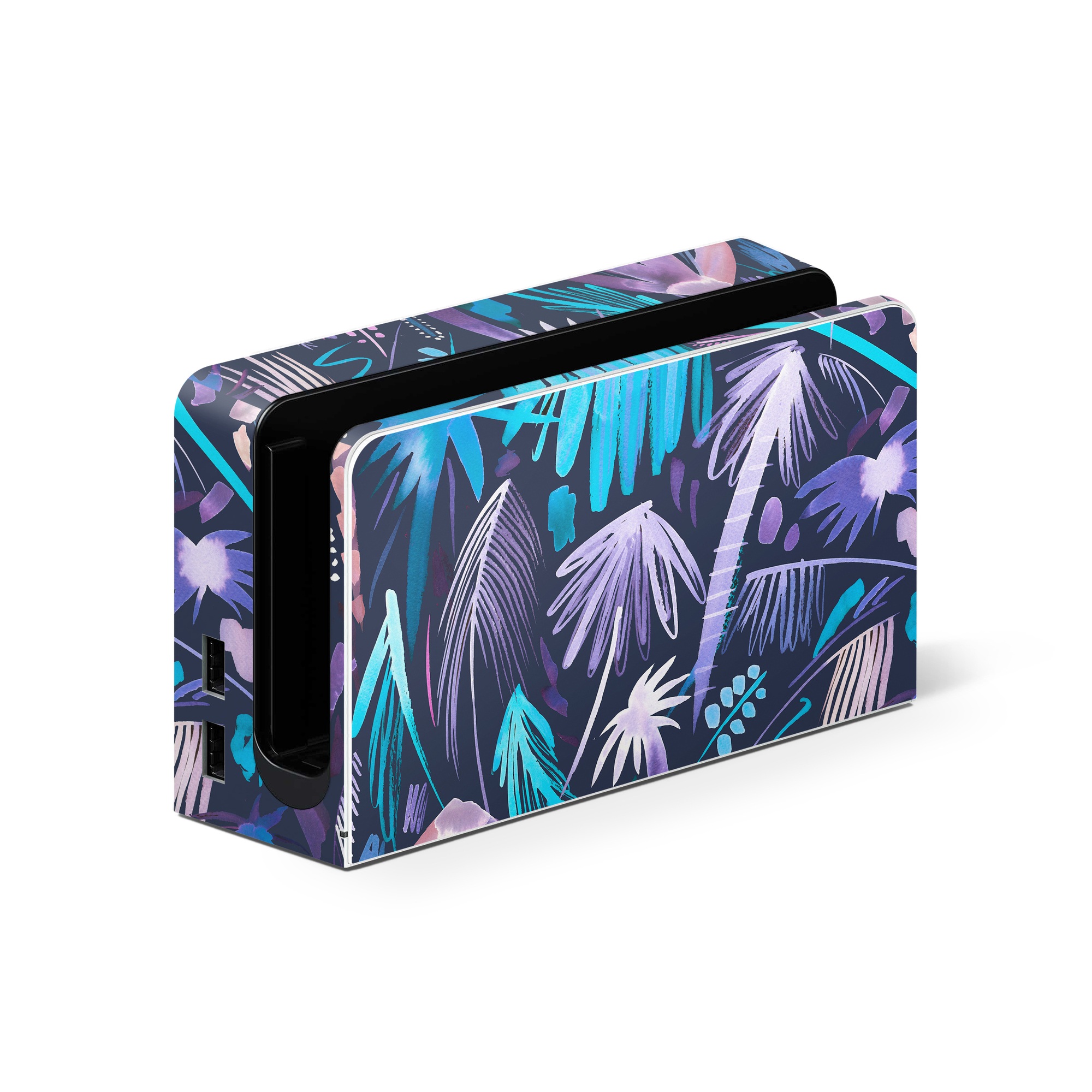 iStyles Nintendo Switch Skin design of Purple, Blue, Graffiti, Pattern, Psychedelic art, Art, Violet, Lilac, Design, Electric blue, with blue, purple, black, white, pink colors, and tagged with patterns, nature, abstract, abstract, bright, colorful, nature, palmtree, palms, tropical, watercolor.