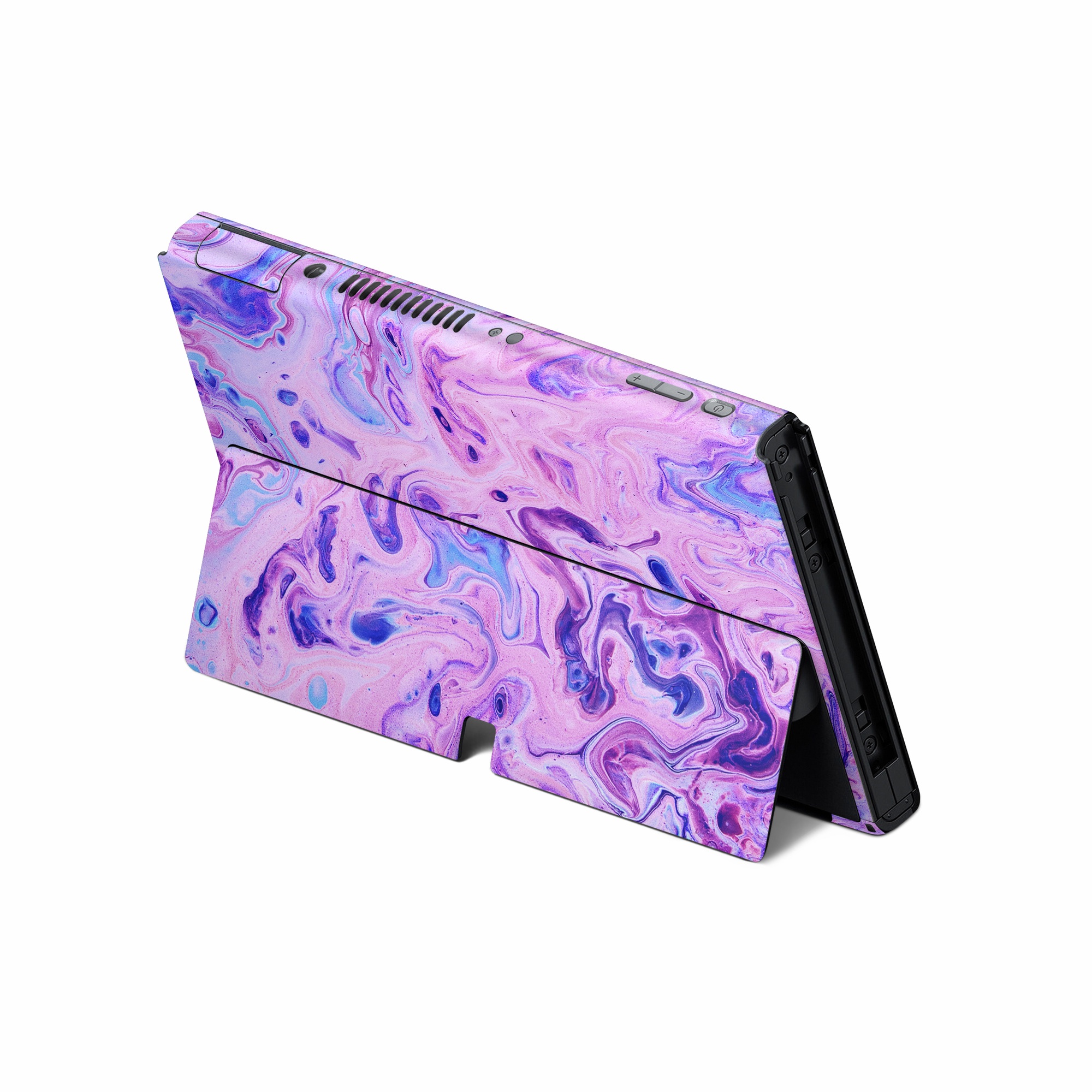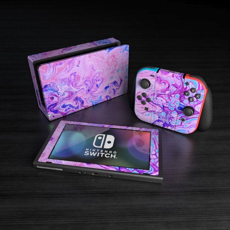 iStyles Nintendo Switch Skin design of Purple, Violet, Lilac, Art, Pattern, Modern art, Painting, Visual arts, Acrylic paint, Magenta, with pink, purple, blue colors, and tagged with abstract, blue, bubble, bubbles, marble, marblepainting, paint, pink, purple, soap.