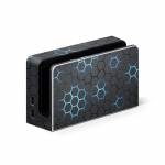 iStyles Nintendo Switch Skin design of Pattern, Water, Design, Circle, Metal, Mesh, Sphere, Symmetry, with black, gray, blue colors, and tagged with lookslike, fantasy, space, drones, geometric, hexagon, tech.