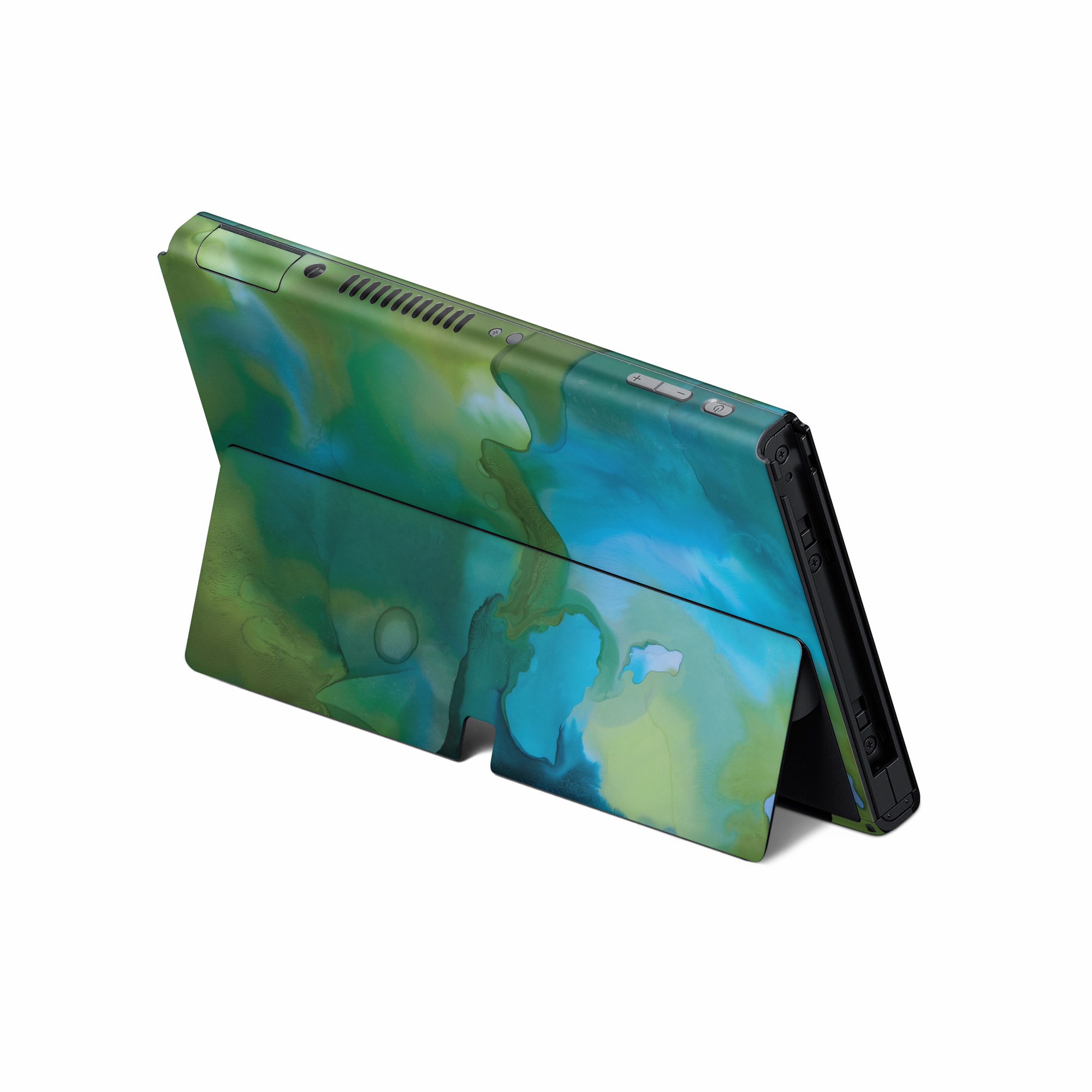 iStyles Nintendo Switch Skin design of Aqua, Blue, Green, Painting, Turquoise, Teal, Water, Acrylic paint, Art, Organism, with blue, green colors, and tagged with abstract, abstract, blue, green, marble, marbled, watercolor.