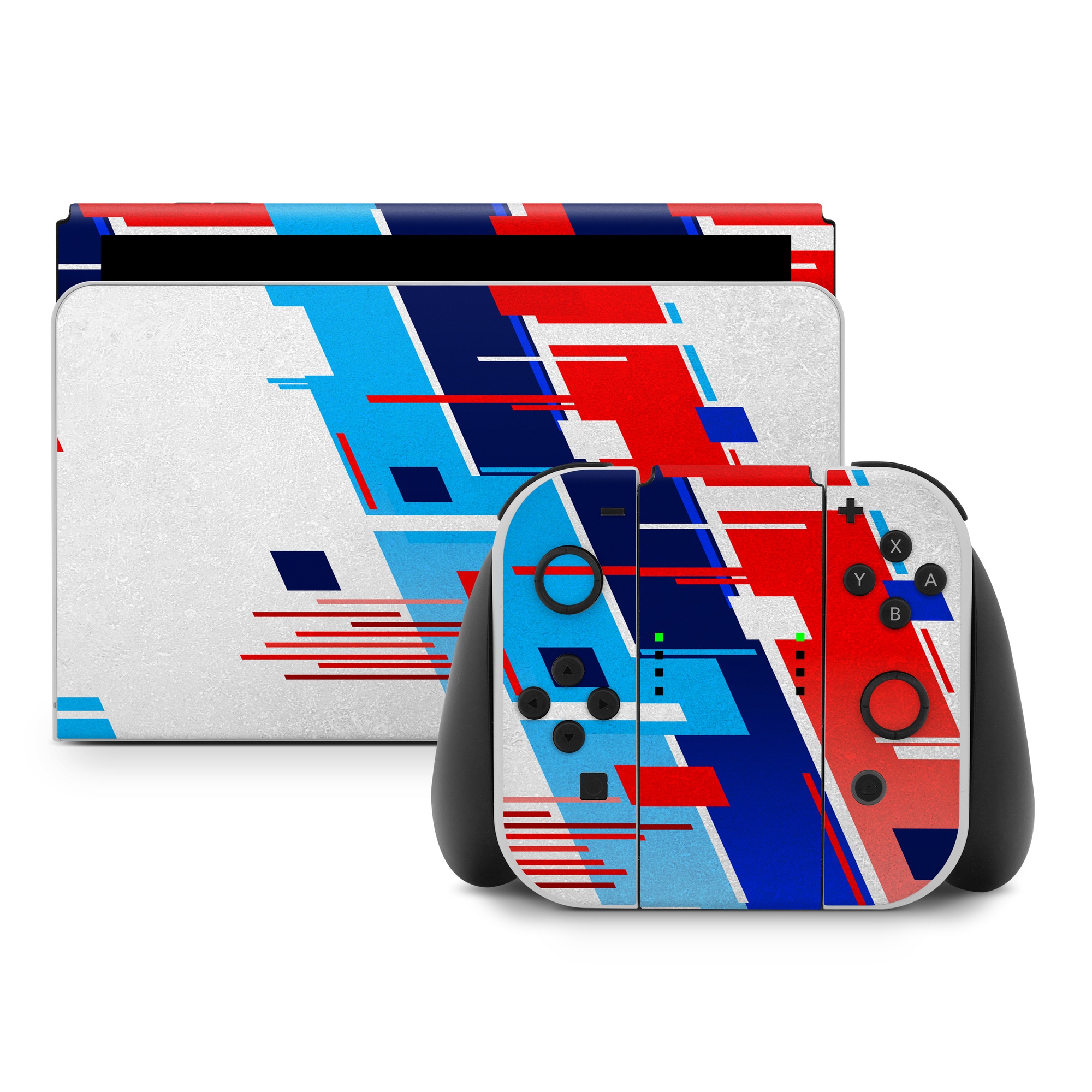 iStyles Nintendo Switch Skin design of Azure, Font, Material property, Parallel, Electric blue, Slope, Graphics, Carmine, Brand, Rectangle, with gray, blue, black, red, purple colors, and tagged with patterns, lookslike, speed, sport, stripes, lines.