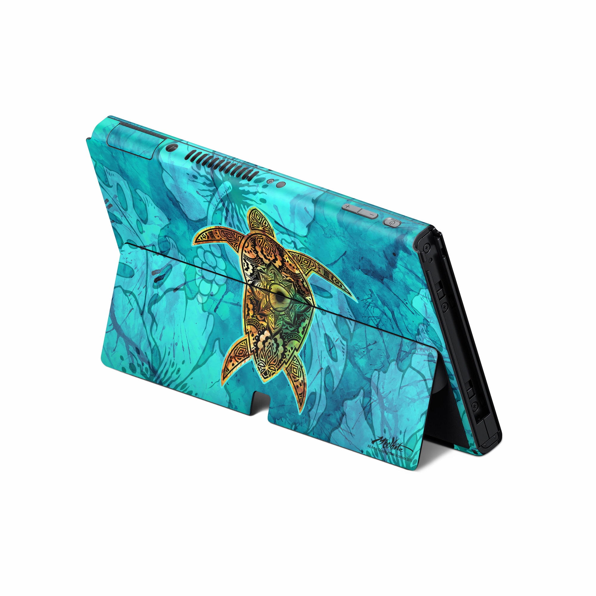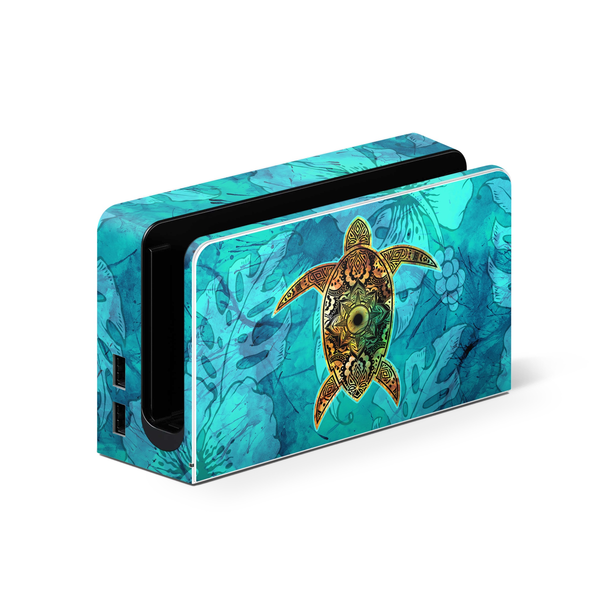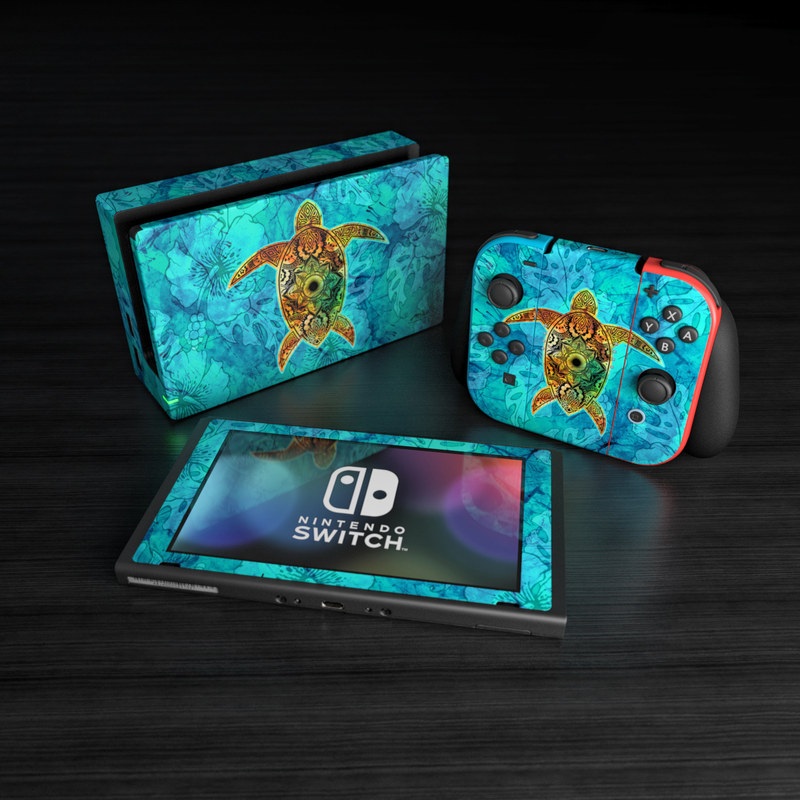 iStyles Nintendo Switch Skin design of Sea turtle, Green sea turtle, Turtle, Hawksbill sea turtle, Tortoise, Reptile, Loggerhead sea turtle, Illustration, Art, Pattern, with blue, black, green, gray, red colors, and tagged with animals.