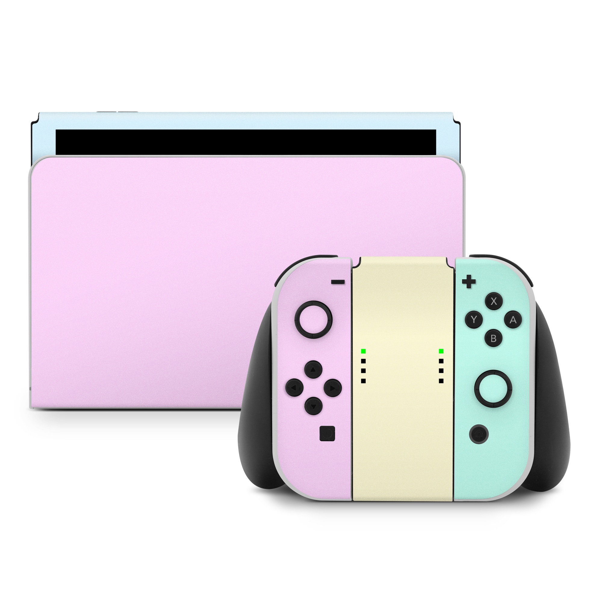 iStyles Nintendo Switch Skin design, with pink, yellow, blue colors, and tagged with solidcolors, ice, cream, pastel.