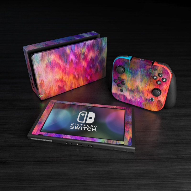 iStyles Nintendo Switch Skin design of Sky, Purple, Pink, Blue, Violet, Painting, Watercolor paint, Lavender, Cloud, Art, with red, blue, purple, orange, green colors, and tagged with abstract, patterns.