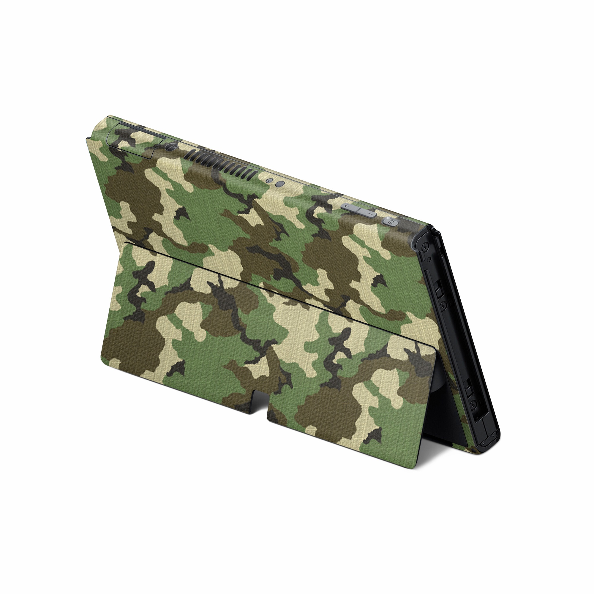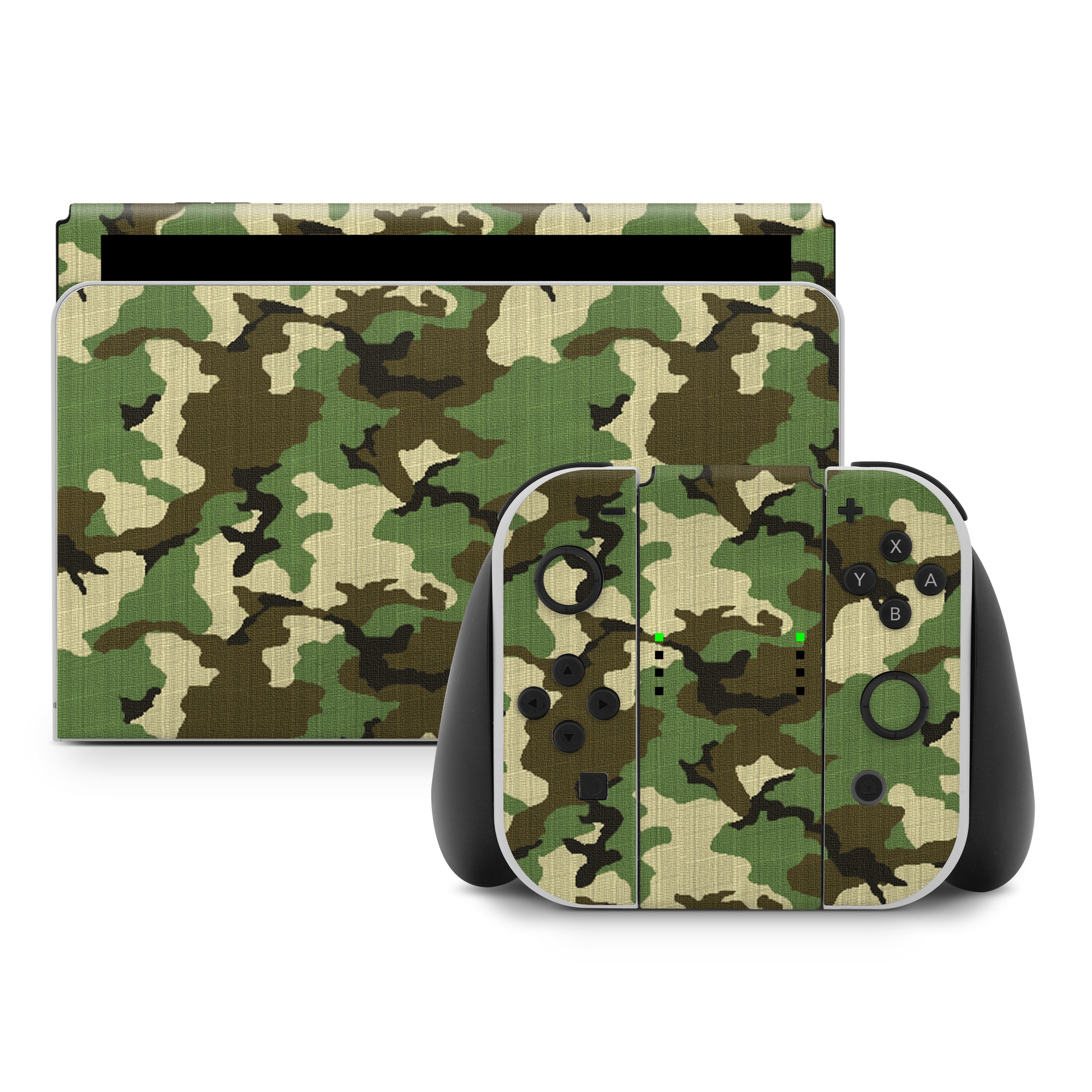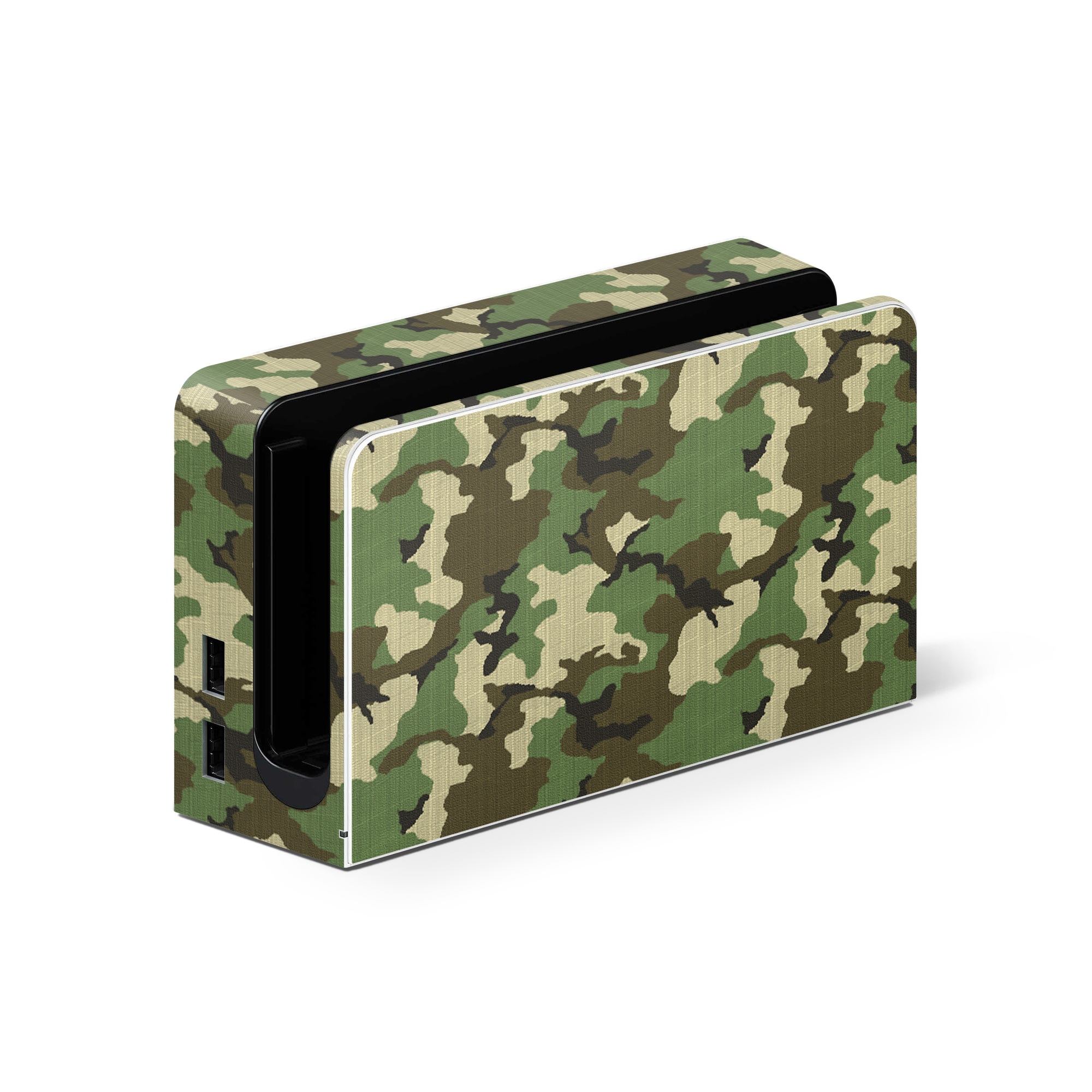 iStyles Nintendo Switch Skin design of Military camouflage, Camouflage, Clothing, Pattern, Green, Uniform, Military uniform, Design, Sportswear, Plane, with black, gray, green colors, and tagged with military, lookslike, patterns.