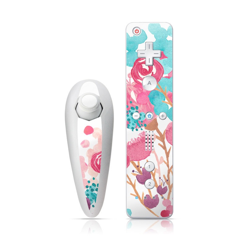 iStyles Wii Nunchuk Remote Skin design of Pink, Pattern, Design, Illustration, Clip art, Plant, Graphics, Art, with white, pink, purple, blue, red colors, and tagged with flowers.
