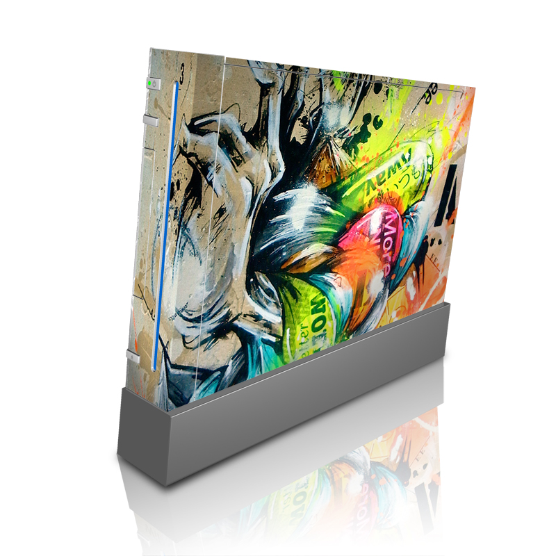 iStyles Wii Skin design of Graphic design, Art, Illustration, Fictional character, Visual arts, Graphics, Painting, Watercolor paint, Modern art, Games, with gray, black, green, red, orange, pink colors, and tagged with abstract, music.