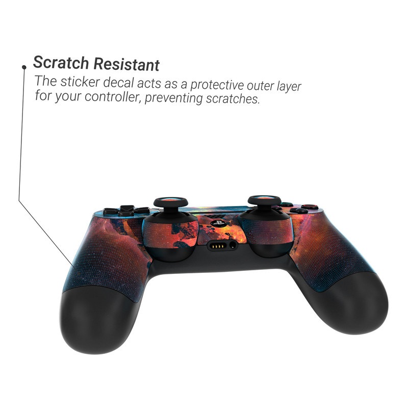 iStyles PlayStation 4 Controller Skin design of Flame, Heat, Fire, Space, Atmosphere, Charcoal, Explosion, Geological phenomenon, Ash, Graphics, with black, red colors, and tagged with space.