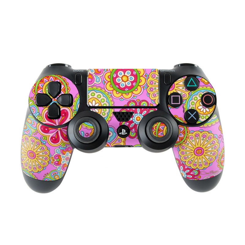 iStyles PlayStation 4 Controller Skin design of Pattern, Design, Textile, Visual arts, Wrapping paper, Motif, Pedicel, with pink, red, orange, yellow, green, blue, purple colors, and tagged with flowers, patterns.