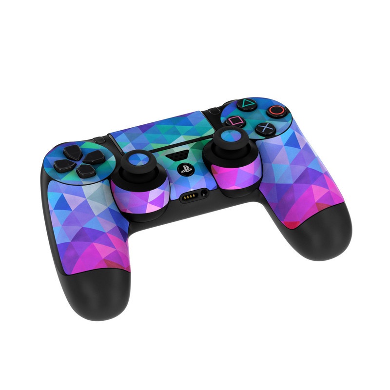 iStyles PlayStation 4 Controller Skin design of Purple, Violet, Pattern, Blue, Magenta, Triangle, Line, Design, Graphic design, Symmetry, with blue, purple, green, red, pink colors, and tagged with patterns.