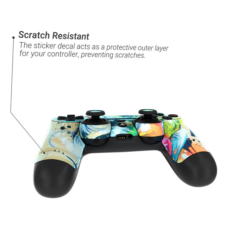 iStyles PlayStation 4 Controller Skin design of Graphic design, Art, Illustration, Fictional character, Visual arts, Graphics, Painting, Watercolor paint, Modern art, Games, with gray, black, green, red, orange, pink colors, and tagged with abstract, music.