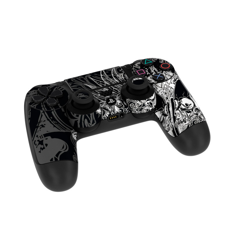 iStyles PlayStation 4 Controller Skin design of Illustration, Art, Design, Monochrome, Graphic design, Pattern, Fictional character, Skull, Black-and-white, Graphics, with black, gray colors, and tagged with fantasy, patterns, objects.