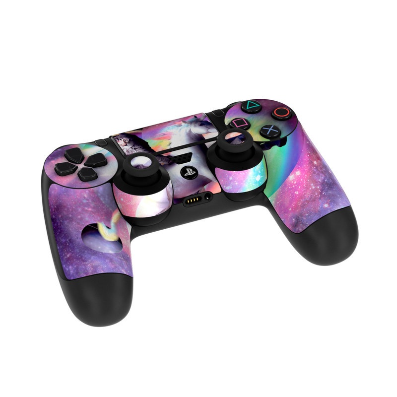 iStyles PlayStation 4 Controller Skin design of Illustration, Graphic design, Fictional character, Space, Sky, Astronomical object, Universe, Outer space, Art, Unicorn, with black, white, gray, red, yellow, green, blue, orange colors, and tagged with space, animals, fantasy, animals, funny, galaxy, lasers, random, space, weird.