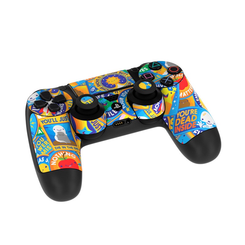 iStyles PlayStation 4 Controller Skin design of Pattern, Visual arts, Design, Art, Mosaic, Psychedelic art, with blue, yellow, orange, white, green, red, gray colors, and tagged with patterns, signs, space, objects, hearts, fuck, funny, humor.