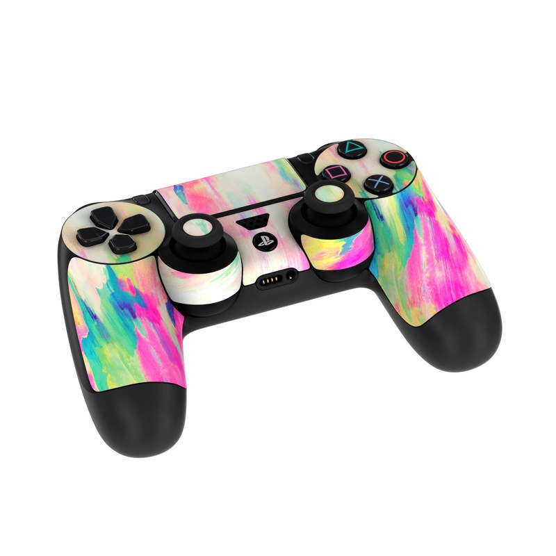 iStyles PlayStation 4 Controller Skin design of Pink, Magenta, Art, Watercolor paint, Dye, Visual arts, Pattern, Modern art, Painting, Acrylic paint, with red, white, green colors, and tagged with abstract, patterns.