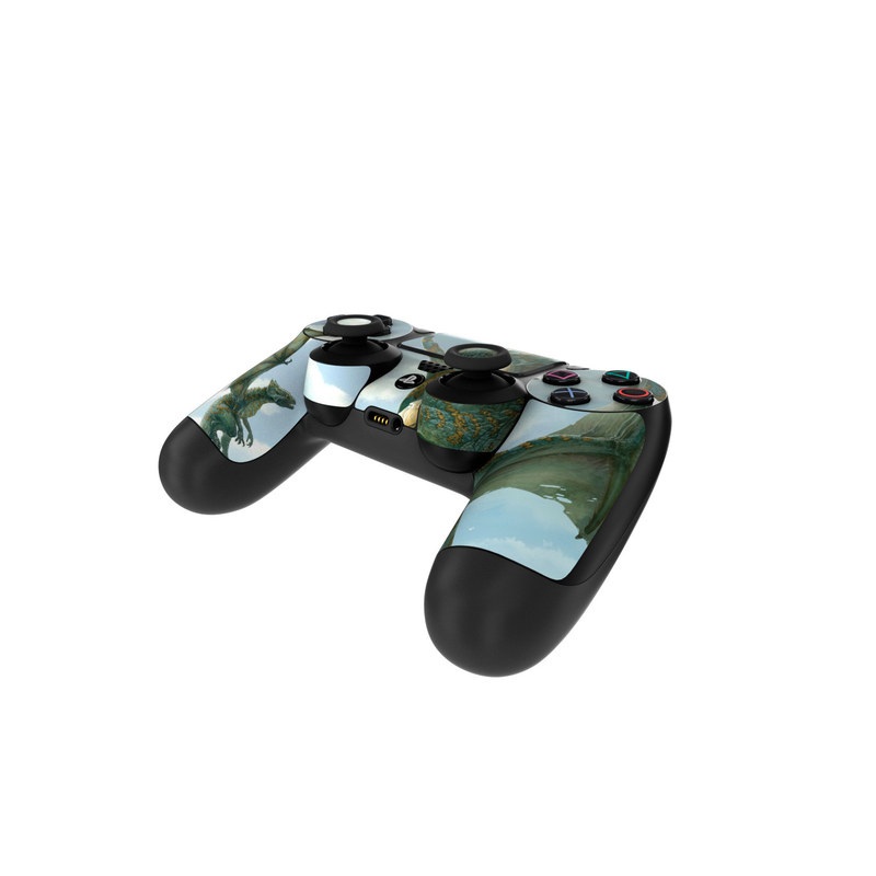 iStyles PlayStation 4 Controller Skin design of Dragon, Cg artwork, Fictional character, Mythical creature, Mythology, Extinction, Cryptid, Illustration, Games, Massively multiplayer online role-playing game, with black, gray, blue, white, purple colors, and tagged with fantasy.