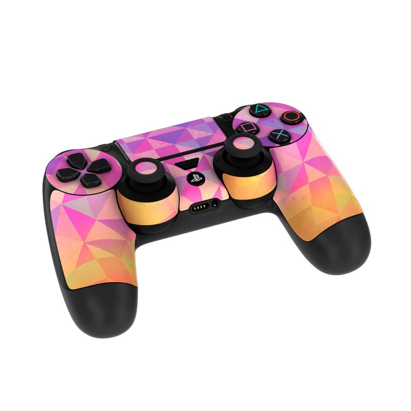 iStyles PlayStation 4 Controller Skin design of Pattern, Purple, Triangle, Violet, Magenta, Line, Design, Symmetry, Psychedelic art, with gray, purple, green, blue, pink colors, and tagged with patterns.