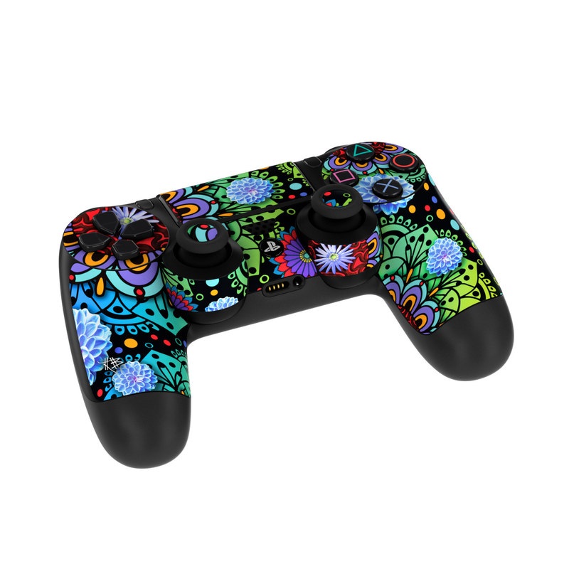 iStyles PlayStation 4 Controller Skin design of Pattern, Psychedelic art, Design, Flower, Art, Visual arts, Floral design, Plant, Textile, Symmetry, with black, blue, green, purple colors, and tagged with patterns, flowers.