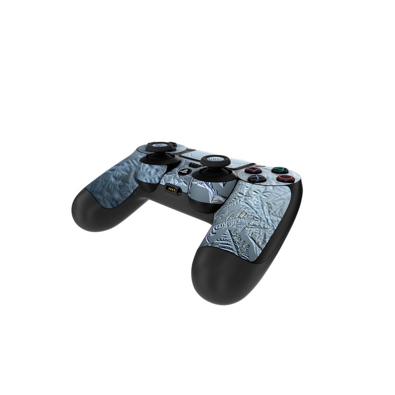 iStyles PlayStation 4 Controller Skin design of Water, Frost, Freezing, Winter, Pattern, Ice, Sky, Atmosphere, Design, Reflection, with blue, gray, white, black colors, and tagged with photos, patterns, blue, cold, crystals, frozen, ice, macro, snow, winter.
