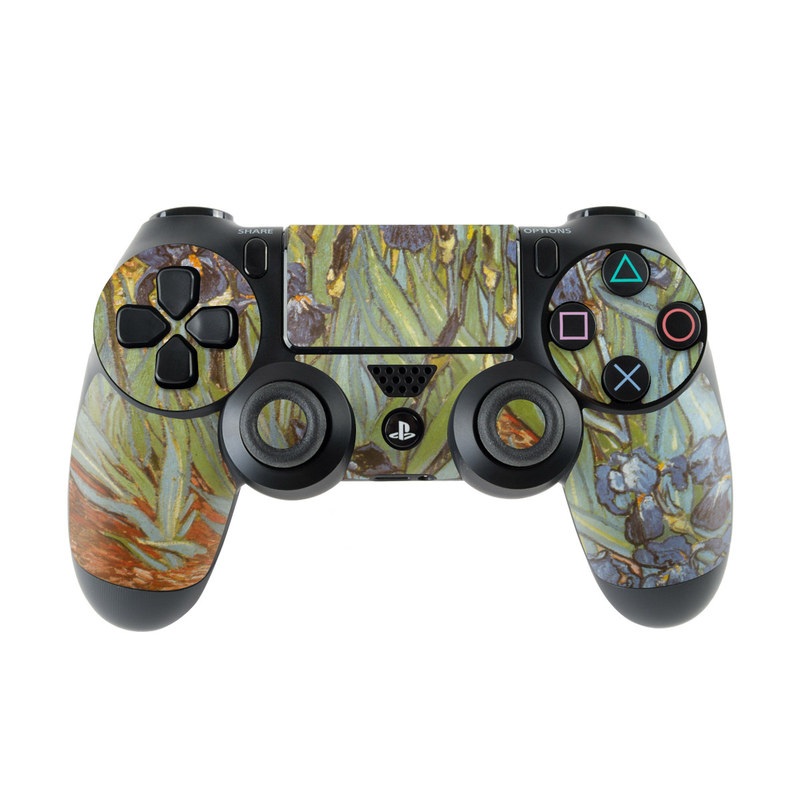 iStyles PlayStation 4 Controller Skin design of Painting, Plant, Art, Flower, Iris, Modern art, Perennial plant, with gray, green, black, red, blue colors, and tagged with fineart, flowers.