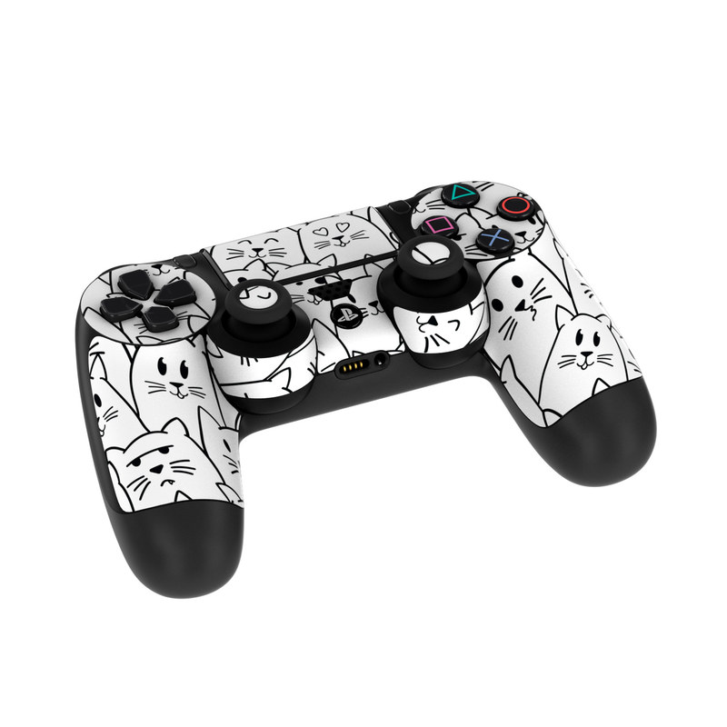 iStyles PlayStation 4 Controller Skin design of White, Line art, Text, Black, Pattern, Black-and-white, Line, Design, Font, Organism, with white, black colors, and tagged with patterns, animals, animals, cartoon, cats, cute, kitty, lineart, sketch.