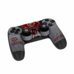 iStyles PlayStation 4 Controller Skin design of Red, Street art, Art, Font, Wall, Graffiti, Visual arts, Illustration, Graphics, Logo, with gray, red colors, and tagged with military, skulls, signs, athlete, fitness, gym, skull, skulls, spade.