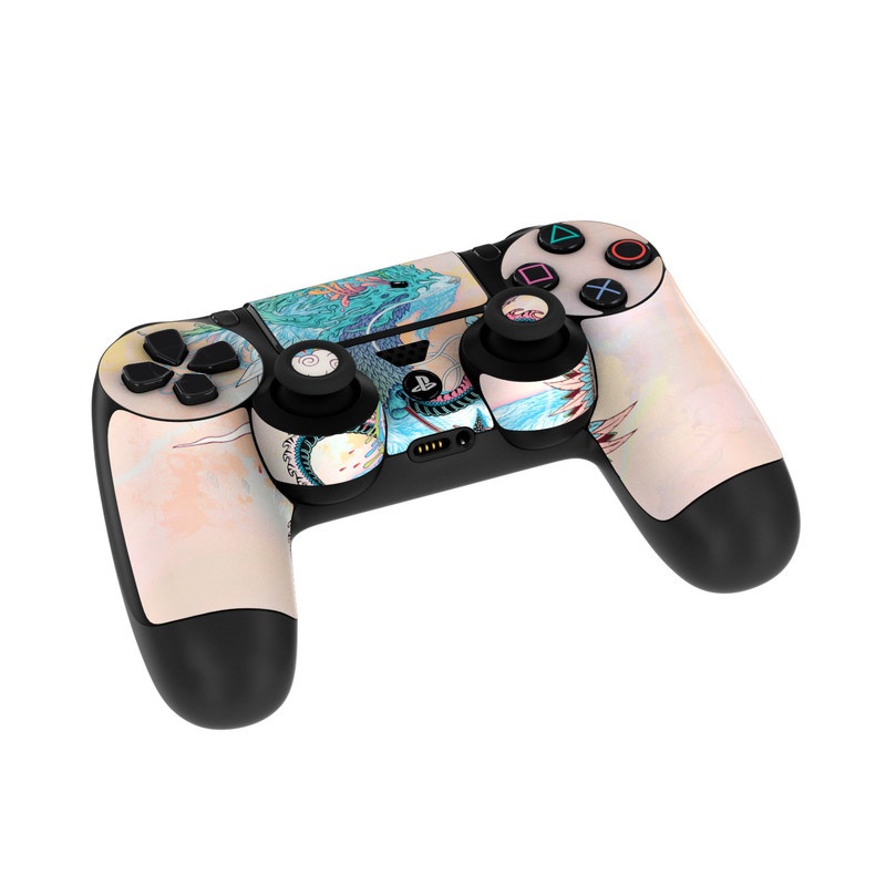 iStyles PlayStation 4 Controller Skin design of Illustration, Water, Watercolor paint, Art, Fictional character, Graphic design, Mythology, Visual arts, Painting, Drawing, with yellow, pink, blue, green colors, and tagged with animals, abstract.