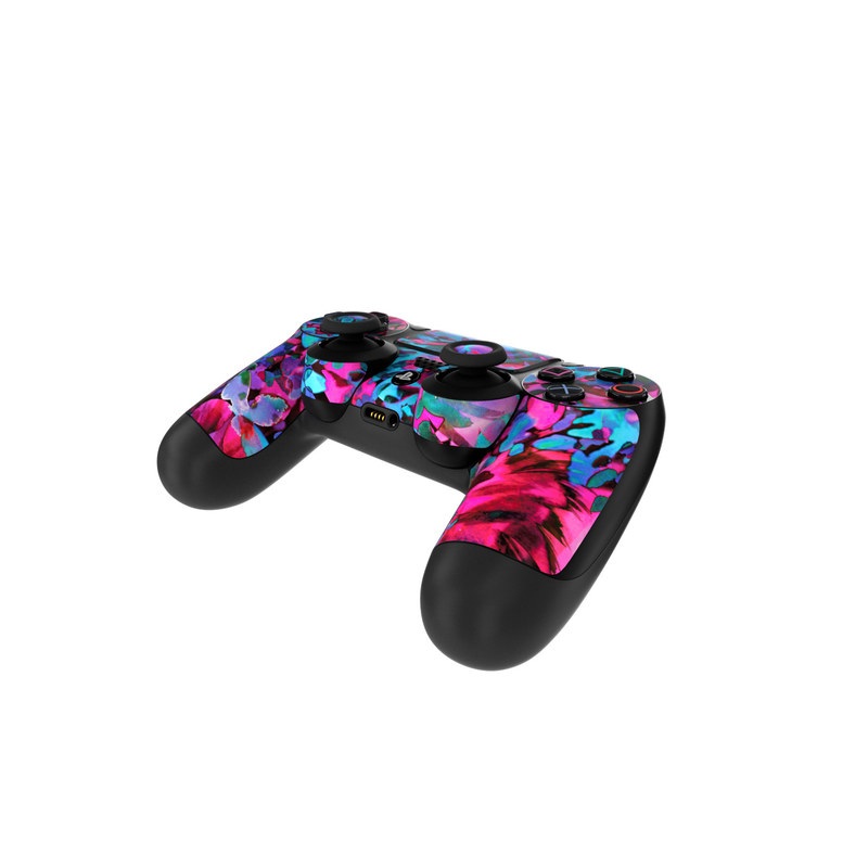 iStyles PlayStation 4 Controller Skin design of Pink, Purple, Violet, Lilac, Flower, Leaf, Plant, Magenta, Botany, Pattern, with black, pink, purple, blue, green colors, and tagged with patterns, flowers, abstract, abstract, bright, colorful, floral, flowers, summer, tropical, watercolor.