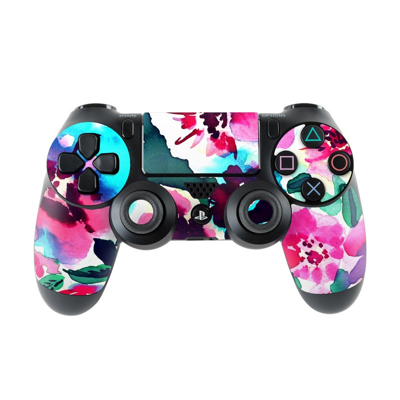 iStyles PlayStation 4 Controller Skin design of Flower, Pink, Petal, Plant, Pattern, Hawaiian hibiscus, Design, Magenta, Flowering plant, Watercolor paint, with white, pink, blue, green, red colors, and tagged with flowers, floral, flowers, nature, watercolor.