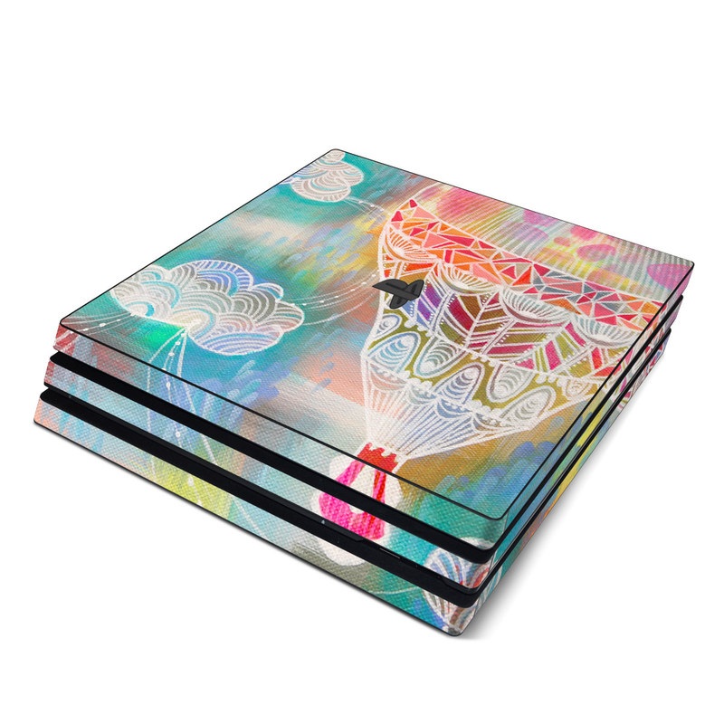 iStyles PlayStation 4 Pro Skin design of Hot air balloon, Balloon, Illustration, Pattern, Vehicle, Aerostat, Hot air ballooning, Graphic design, Art, with blue, red, yellow, pink, white colors, and tagged with objects, nature.