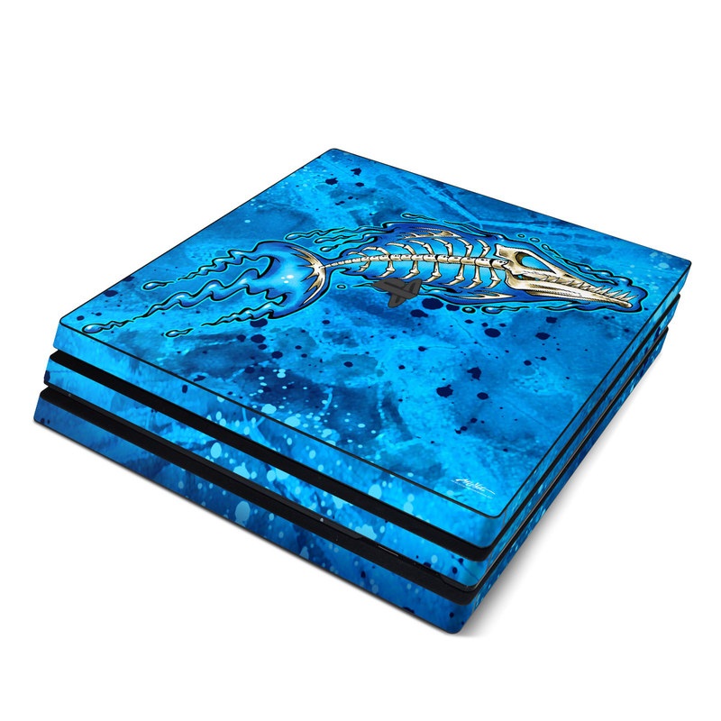 iStyles PlayStation 4 Pro Skin design of Blue, Water, Aqua, Electric blue, Illustration, Graphic design, Liquid, Graphics, Marine biology, Art, with blue, white colors, and tagged with skulls, animals.