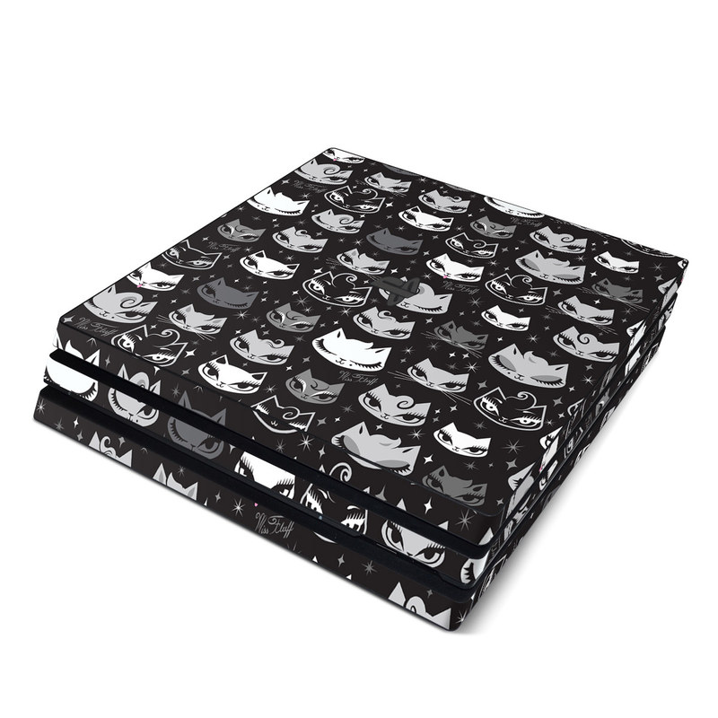 iStyles PlayStation 4 Pro Skin design of Pattern, Design, Headgear, Hat, Smile, Team, Crowd, with black, white, gray colors, and tagged with patterns, animals, blackandwhite, cartoon, Cat, cats, kitten, pattern.