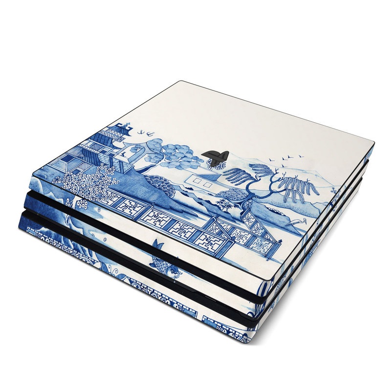 iStyles PlayStation 4 Pro Skin design of Blue, Blue and white porcelain, Winter, Christmas eve, Illustration, Snow, World, Art, with blue, white colors, and tagged with urban, objects, animals, nature.
