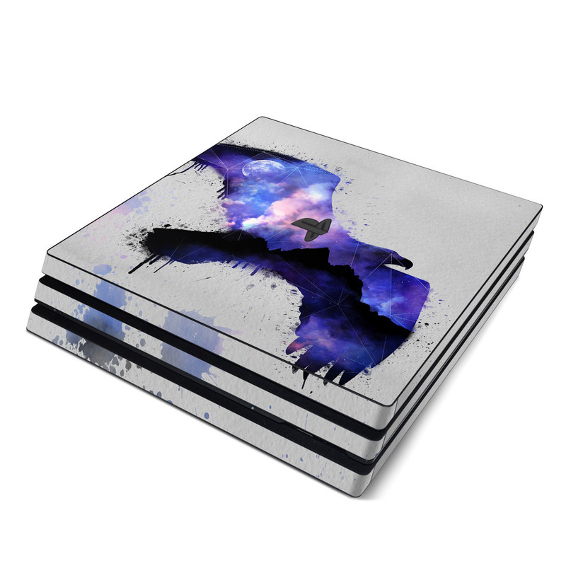 iStyles PlayStation 4 Pro Skin design of Blue, Watercolor paint, Purple, Water, Graphic design, Illustration, Art, Ink, Painting, Electric blue, with gray, white, blue, black, purple colors, and tagged with animals, nature, space, animals, bird, eagle, falcon, hawk, moon, nature, night, stars, watercolor.