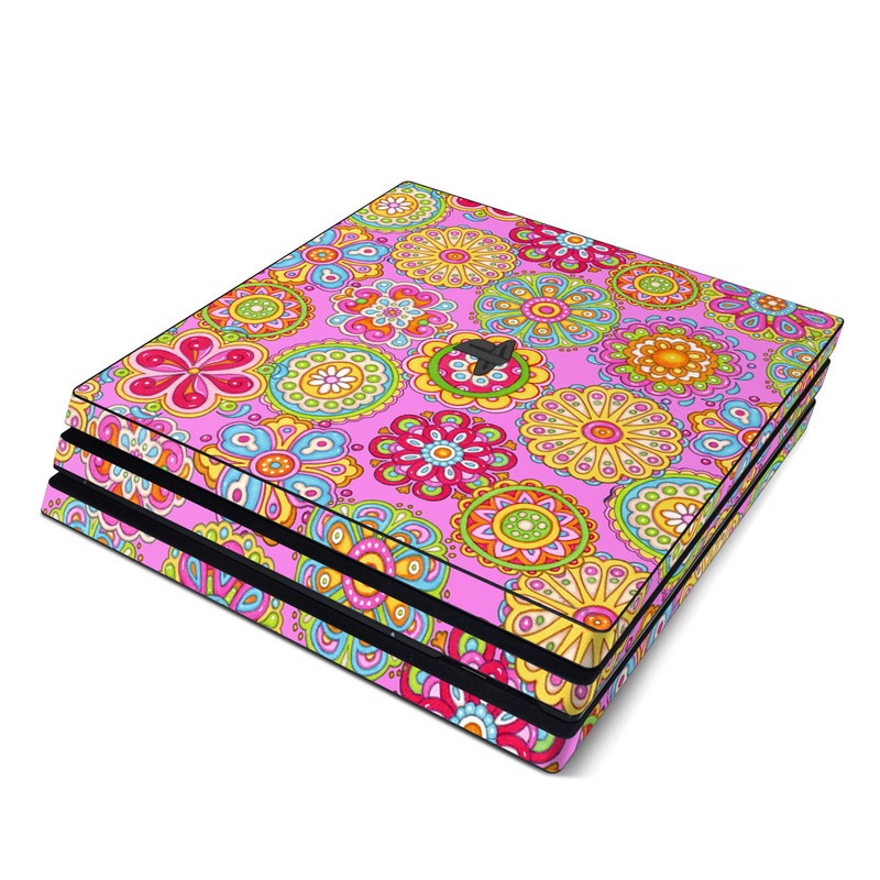 iStyles PlayStation 4 Pro Skin design of Pattern, Design, Textile, Visual arts, Wrapping paper, Motif, Pedicel, with pink, red, orange, yellow, green, blue, purple colors, and tagged with flowers, patterns.