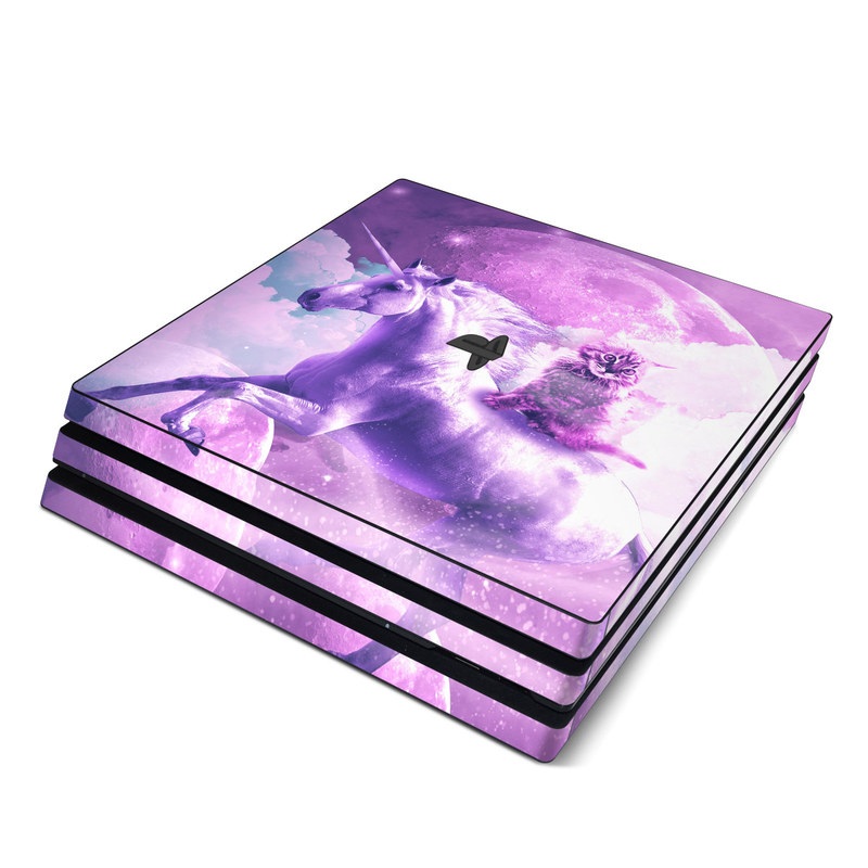 iStyles PlayStation 4 Pro Skin design of Unicorn, Purple, Fictional character, Mythical creature, Violet, Cg artwork, Illustration, Mythology, with white, purple, blue, gray, black colors, and tagged with animals, fantasy, space, animal, animals, cat, fantasy, galaxy, horse, kitten, space, unicorn, universe.